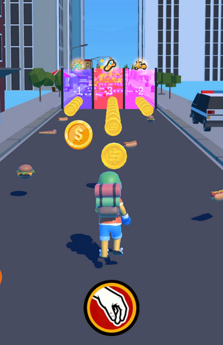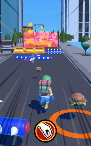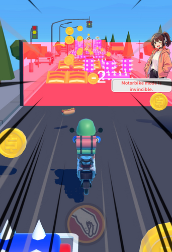 Swipe left and right to dodge traps, grab the target food shown at the top, and use your hearts (❤) as “toll money” to pass doors. Cheap doors cost less ❤ but give small rewards;risky doors cost more ❤ and can unlock bonus routes, sprint buffs and motorbike invincibility.